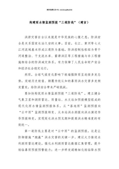 【七哥公文】2025年:【七哥公文】构建雨水情监测预报“三道防线”(建言)+更多免费公文+VX:QiGeGongWen2024+更多免费公文+VX:QiGeGongWen2024