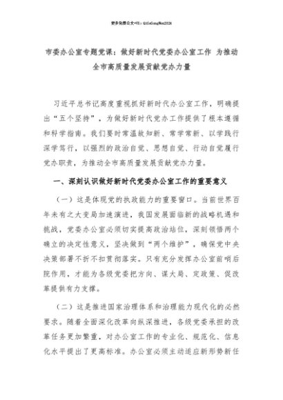 【七哥公文】2025年:【七哥公文】市委办公室专题党课:做好新时代党委办公室工作 为推动全市高质量发展贡献党办力量+更多免费公文+VX:QiGeGongWen2024+更多免费公文+VX:QiGeGongWen2024