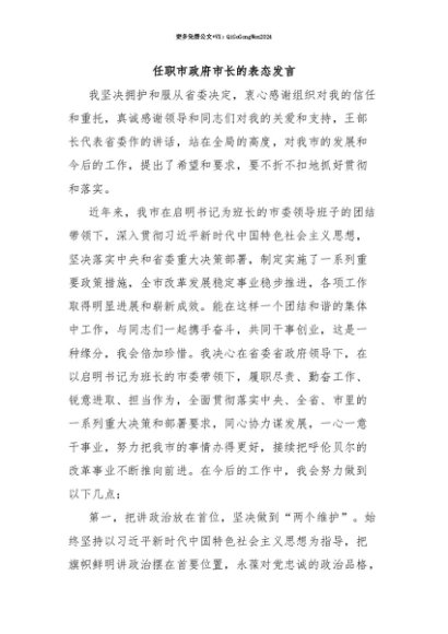 【七哥公文】2025年:【七哥公文】任职市政府市长的表态发言+更多免费公文+VX:QiGeGongWen2024+更多免费公文+VX:QiGeGongWen2024
