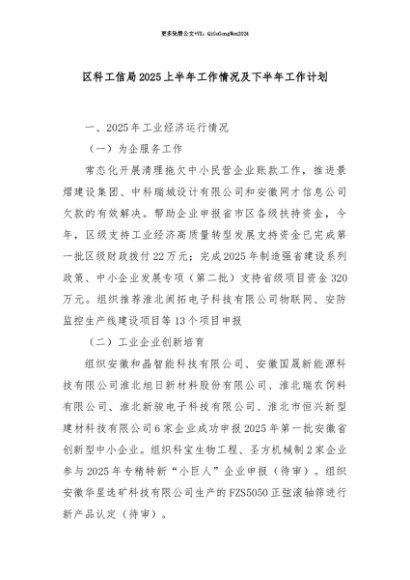 【七哥公文】2025年:【七哥公文】区科工信局2025上半年工作情况及下半年工作计划+更多免费公文+VX:QiGeGongWen2024+更多免费公文+VX:QiGeGongWen2024