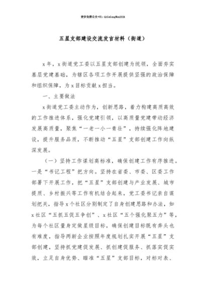 【七哥公文】2025年:【七哥公文】五星支部建设交流发言材料(街道)+更多免费公文+VX:QiGeGongWen2024+更多免费公文+VX:QiGeGongWen2024