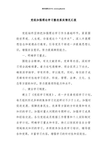 【七哥公文】2025年:【七哥公文】党组加强理论学习整改落实情况汇报+更多免费公文+VX:QiGeGongWen2024+更多免费公文+VX:QiGeGongWen2024