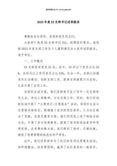 【七哥公文】2025年:【七哥公文】2025年度XX支部书记述职报告+更多免费公文+VX:QiGeGongWen2024+更多免费公文+VX:QiGeGongWen2024