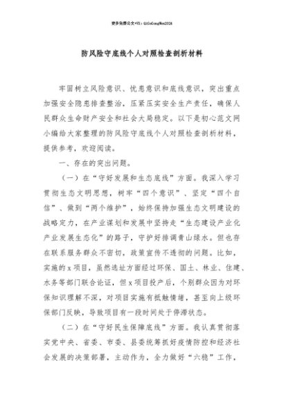 【七哥公文】2025年:【七哥公文】防风险守底线个人对照检查剖析材料+更多免费公文+VX:QiGeGongWen2024+更多免费公文+VX:QiGeGongWen2024
