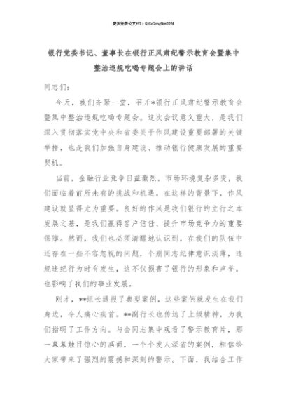 【七哥公文】2025年:【七哥公文】银行党委书记、董事长在银行正风肃纪警示教育会暨集中整治违规吃喝专题会上的讲话+更多免费公文+VX:QiGeGongWen2024+更多免费公文+VX:QiGeGongWen2024