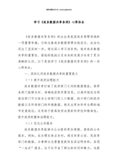 【七哥公文】2025年:【七哥公文】学习《政务数据共享条例》心得体会+更多免费公文+VX:QiGeGongWen2024+更多免费公文+VX:QiGeGongWen2024