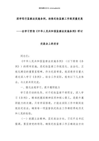 【七哥公文】2025年:【七哥公文】深学笃行监察法实施条例,助推纪检监察工作高质量发展——在学习贯彻《中华人民共和国监察法实施条例》研讨交流会上的发言+更多免费公文+VX:QiGeGongWen2024+更多免费公文+VX:QiGeGongWen2024