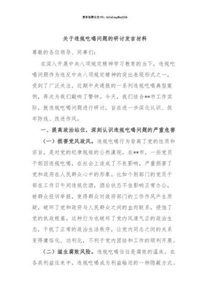 【七哥公文】2025年:【七哥公文】关于违规吃喝问题的研讨发言材料+更多免费公文+VX:QiGeGongWen2024+更多免费公文+VX:QiGeGongWen2024