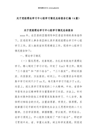 【七哥公文】2025年:【七哥公文】(4篇)关于党组理论学习中心组学习情况总结报告汇编+更多免费公文+VX:QiGeGongWen2024+更多免费公文+VX:QiGeGongWen2024