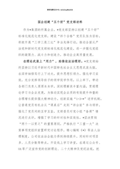 【七哥公文】2025年:【七哥公文】国企创建“五个好”党支部材料+更多免费公文+VX:QiGeGongWen2024+更多免费公文+VX:QiGeGongWen2024