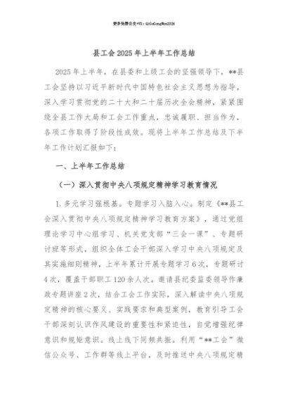 【七哥公文】2025年:【七哥公文】县工会2025年上半年工作总结+更多免费公文+VX:QiGeGongWen2024+更多免费公文+VX:QiGeGongWen2024