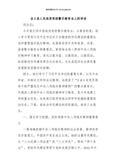 【七哥公文】2025年:【七哥公文】在X县人民政府党组警示教育会上的讲话+更多免费公文+VX:QiGeGongWen2024+更多免费公文+VX:QiGeGongWen2024