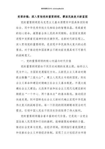 【七哥公文】2025年:【七哥公文】党课讲稿:深入贯彻党的重要纲领,擘画民族复兴新蓝图+更多免费公文+VX:QiGeGongWen2024+更多免费公文+VX:QiGeGongWen2024