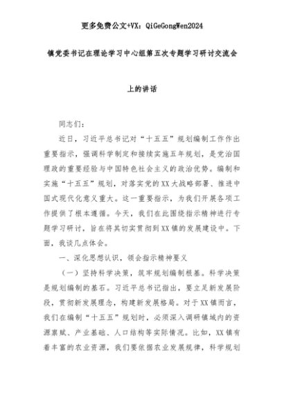 【七哥公文】2025年:【七哥公文】镇党委书记在理论学习中心组第五次专题学习研讨交流会上的讲话+更多免费公文+VX:QiGeGongWen2024+更多免费公文+VX:QiGeGongWen2024