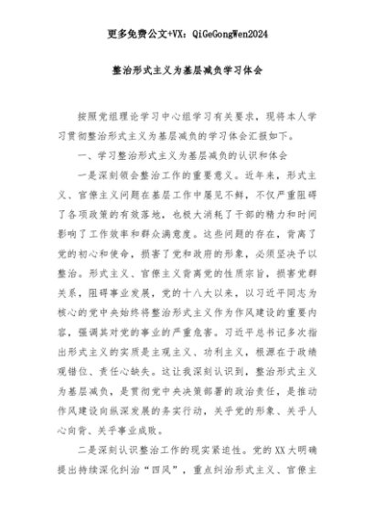 【七哥公文】2025年:【七哥公文】整治形式主义为基层减负学习体会+更多免费公文+VX:QiGeGongWen2024+更多免费公文+VX:QiGeGongWen2024