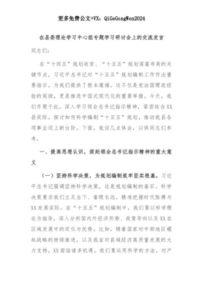 【七哥公文】2025年:【七哥公文】在县委理论学习中心组专题学习研讨会上的交流发言+更多免费公文+VX:QiGeGongWen2024+更多免费公文+VX:QiGeGongWen2024