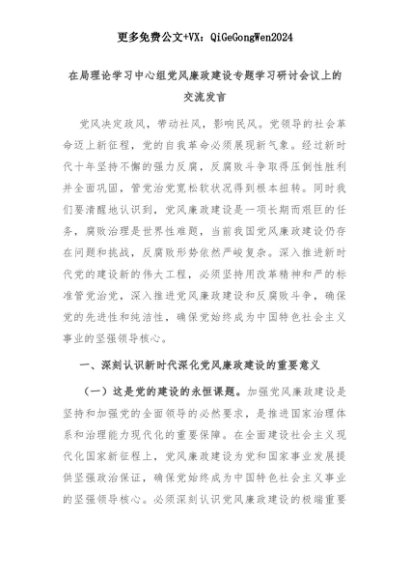【七哥公文】2025年:【七哥公文】在局理论学习中心组党风廉政建设专题学习研讨会议上的交流发言+更多免费公文+VX:QiGeGongWen2024+更多免费公文+VX:QiGeGongWen2024