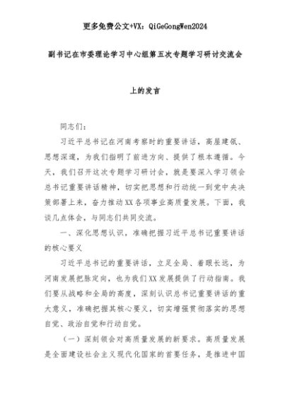 【七哥公文】2025年:【七哥公文】副书记在市委理论学习中心组第五次专题学习研讨交流会上的发言+更多免费公文+VX:QiGeGongWen2024+更多免费公文+VX:QiGeGongWen2024