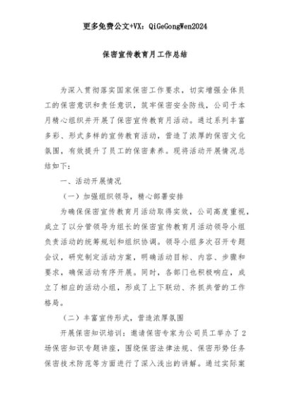 【七哥公文】2025年:【七哥公文】保密宣传教育月工作总结+更多免费公文+VX:QiGeGongWen2024+更多免费公文+VX:QiGeGongWen2024