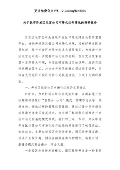 【七哥公文】2025年:【七哥公文】关于我市开发区运营公司市场化运作情况的调研报告+更多免费公文+VX:QiGeGongWen2024+更多免费公文+VX:QiGeGongWen2024