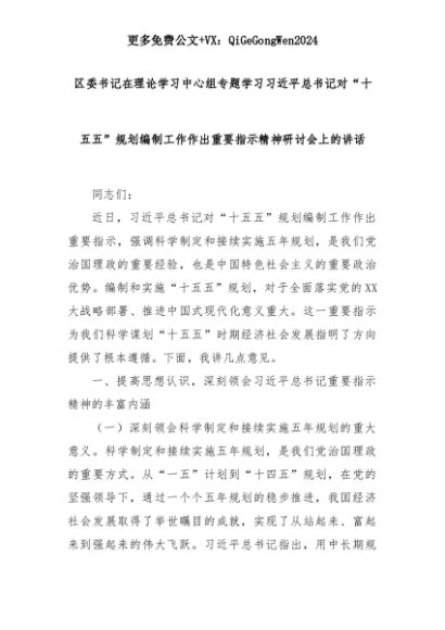【七哥公文】2025年:【七哥公文】区委书记在理论学习中心组专题学习习近平总书记对“十五五”规划编制工作作出重要指示精神研讨会上的讲话+更多免费公文+VX:QiGeGongWen2024+更多免费公文+VX:QiGeGongWen2024
