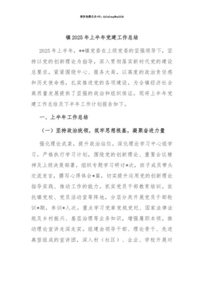 【七哥公文】2025年:【七哥公文】镇2025年上半年党建工作总结+更多免费公文+VX:QiGeGongWen2024+更多免费公文+VX:QiGeGongWen2024