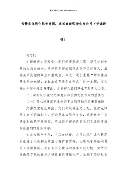 【七哥公文】2025年:【七哥公文】常修常炼强化纪律意识,真抓真改弘扬优良作风(党课讲稿)+更多免费公文+VX:QiGeGongWen2024+更多免费公文+VX:QiGeGongWen2024