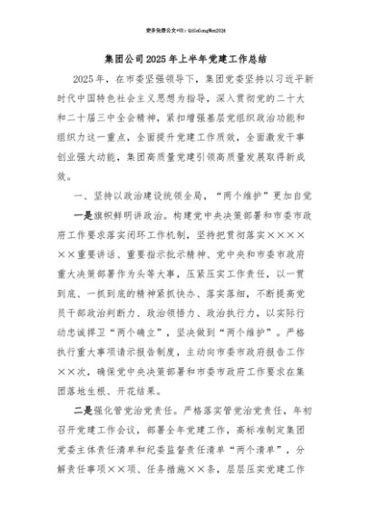 【七哥公文】2025年:【七哥公文】集团公司2025年上半年党建工作总结+更多免费公文+VX:QiGeGongWen2024+更多免费公文+VX:QiGeGongWen2024