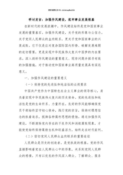 【七哥公文】2025年:【七哥公文】研讨发言:加强作风建设,筑牢事业发展根基+更多免费公文+VX:QiGeGongWen2024+更多免费公文+VX:QiGeGongWen2024