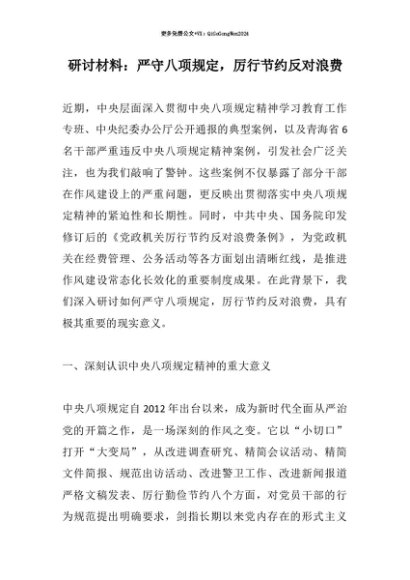 【七哥公文】2025年:【七哥公文】研讨材料:严守八项规定,厉行节约反对浪费_副本+更多免费公文+VX:QiGeGongWen2024+更多免费公文+VX:QiGeGongWen2024