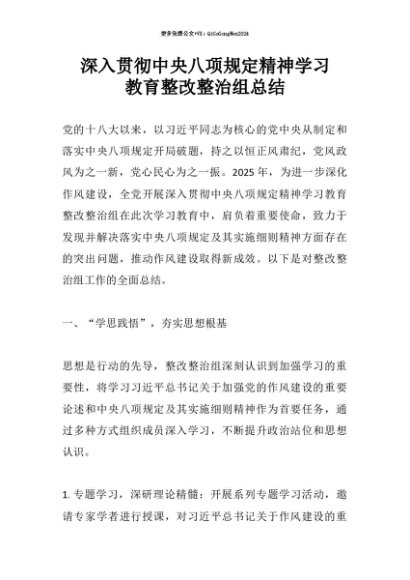 【七哥公文】2025年:【七哥公文】深入贯彻中央八项规定精神学习教育整改整治组总结_副本+更多免费公文+VX:QiGeGongWen2024+更多免费公文+VX:QiGeGongWen2024