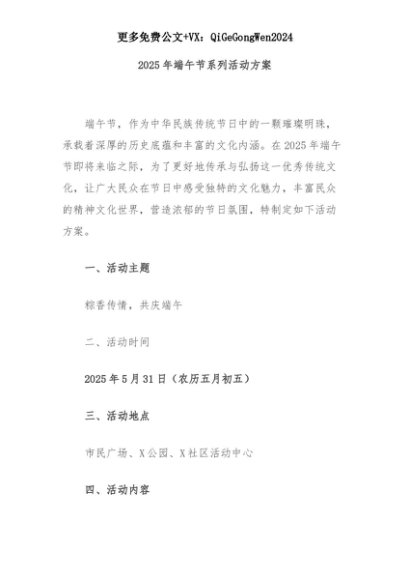 【七哥公文】2025年:【七哥公文】2025年端午节系列活动方案+更多免费公文+VX:QiGeGongWen2024+更多免费公文+VX:QiGeGongWen2024