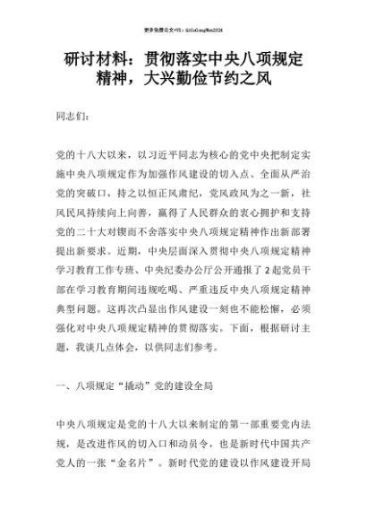 【七哥公文】2025年:【七哥公文】研讨材料:贯彻落实中央八项规定精神,大兴勤俭节约之风_副本+更多免费公文+VX:QiGeGongWen2024+更多免费公文+VX:QiGeGongWen2024