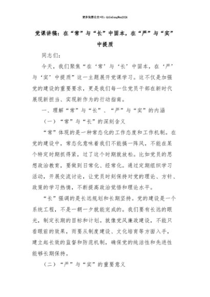 【七哥公文】2025年:【七哥公文】党课讲稿:在“常”与“长”中固本,在“严”与“实”中提质+更多免费公文+VX:QiGeGongWen2024+更多免费公文+VX:QiGeGongWen2024