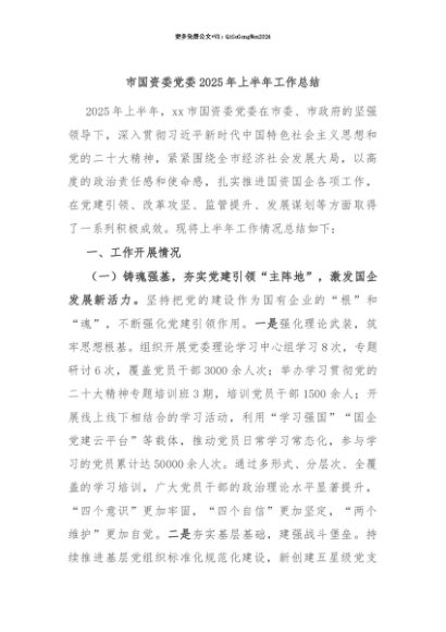 【七哥公文】2025年:【七哥公文】市国资委党委2025年上半年工作总结+更多免费公文+VX:QiGeGongWen2024+更多免费公文+VX:QiGeGongWen2024