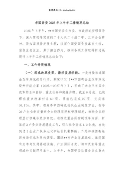 【七哥公文】2025年:【七哥公文】市国资委2025年上半年工作情况总结+更多免费公文+VX:QiGeGongWen2024+更多免费公文+VX:QiGeGongWen2024
