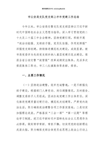 【七哥公文】2025年:【七哥公文】市公安局支队党支部上半年党建工作总结+更多免费公文+VX:QiGeGongWen2024+更多免费公文+VX:QiGeGongWen2024