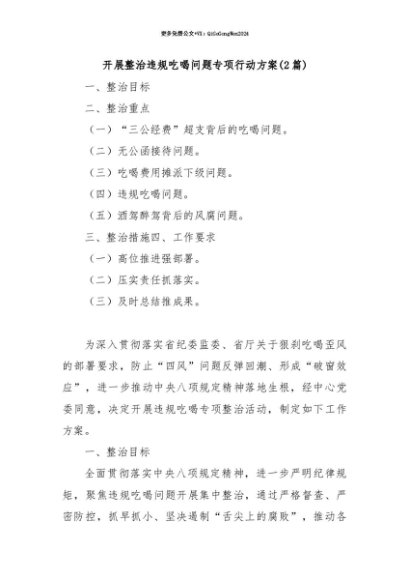 【七哥公文】2025年:【七哥公文】(2篇)开展整治违规吃喝问题专项行动方案+更多免费公文+VX:QiGeGongWen2024+更多免费公文+VX:QiGeGongWen2024