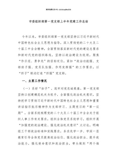 【七哥公文】2025年:【七哥公文】市委组织部第一党支部上半年党建工作总结+更多免费公文+VX:QiGeGongWen2024+更多免费公文+VX:QiGeGongWen2024