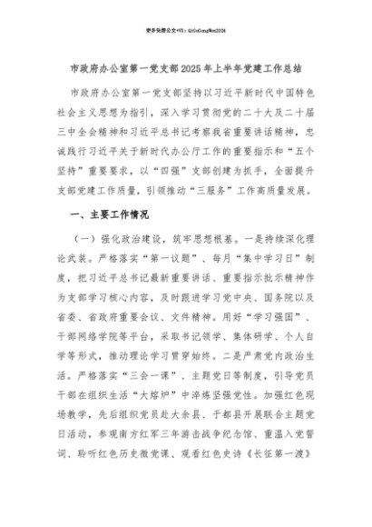 【七哥公文】2025年:【七哥公文】市政府办公室第一党支部2025年上半年党建工作总结+更多免费公文+VX:QiGeGongWen2024+更多免费公文+VX:QiGeGongWen2024