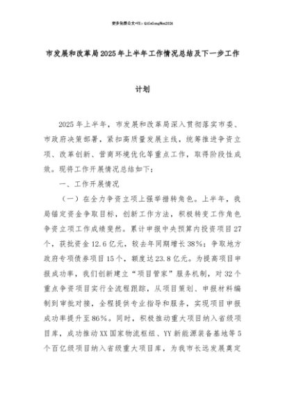 【七哥公文】2025年:【七哥公文】市发展和改革局2025年上半年工作情况总结及下一步工作计划+更多免费公文+VX:QiGeGongWen2024+更多免费公文+VX:QiGeGongWen2024