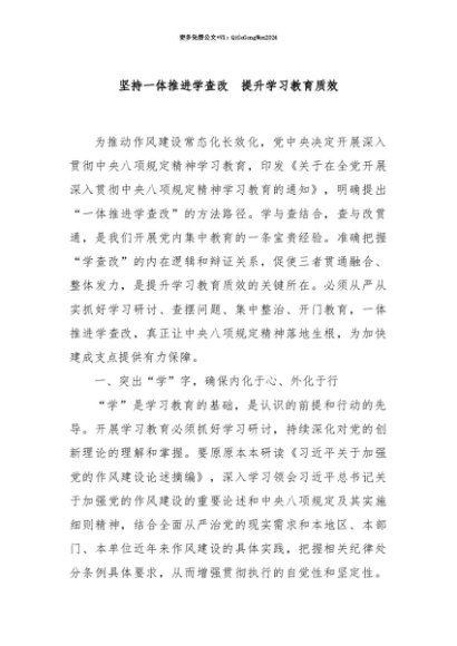 【七哥公文】2025年:【七哥公文】坚持一体推进学查改提升学习教育质效+更多免费公文+VX:QiGeGongWen2024+更多免费公文+VX:QiGeGongWen2024