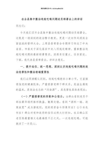 【七哥公文】2025年:【七哥公文】在全县集中整治违规吃喝问题动员部署会上的讲话+更多免费公文+VX:QiGeGongWen2024+更多免费公文+VX:QiGeGongWen2024