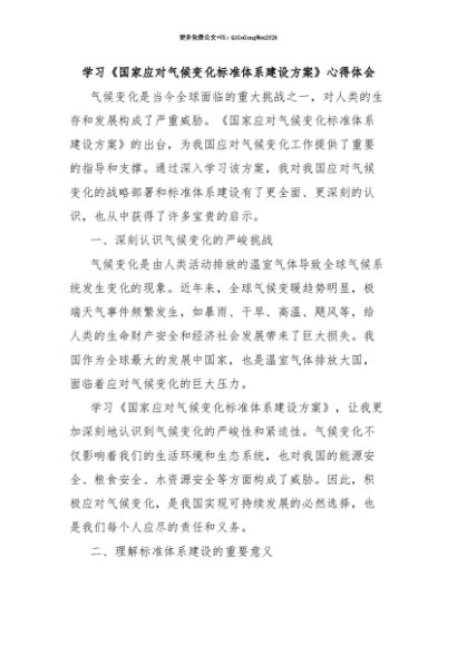 【七哥公文】2025年:【七哥公文】学习《国家应对气候变化标准体系建设方案》心得体会+更多免费公文+VX:QiGeGongWen2024+更多免费公文+VX:QiGeGongWen2024