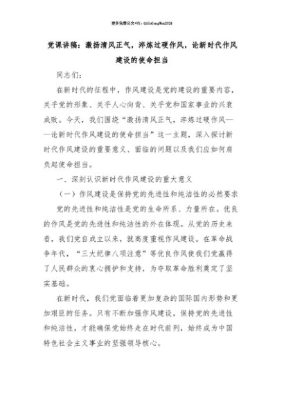 【七哥公文】2025年:【七哥公文】党课讲稿:激扬清风正气,淬炼过硬作风,论新时代作风建设的使命担当+更多免费公文+VX:QiGeGongWen2024+更多免费公文+VX:QiGeGongWen2024