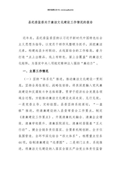 【七哥公文】2025年:【七哥公文】县纪委监委关于廉洁文化建设工作情况的报告+更多免费公文+VX:QiGeGongWen2024+更多免费公文+VX:QiGeGongWen2024