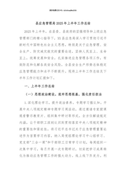 【七哥公文】2025年:【七哥公文】县应急管理局2025年上半年工作总结+更多免费公文+VX:QiGeGongWen2024+更多免费公文+VX:QiGeGongWen2024