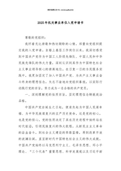 【七哥公文】2025年:【七哥公文】2025年机关事业单位入党申请书+更多免费公文+VX:QiGeGongWen2024+更多免费公文+VX:QiGeGongWen2024