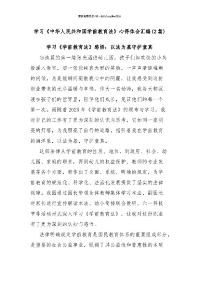 【七哥公文】2025年:【七哥公文】(2篇)学习《中华人民共和国学前教育法》心得体会汇编+更多免费公文+VX:QiGeGongWen2024+更多免费公文+VX:QiGeGongWen2024