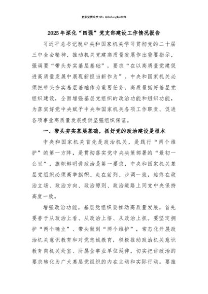 【七哥公文】2025年:【七哥公文】2025年深化“四强”党支部建设工作情况报告+更多免费公文+VX:QiGeGongWen2024+更多免费公文+VX:QiGeGongWen2024